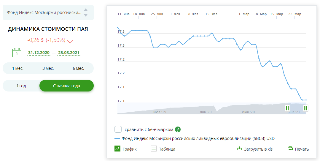 Цена на еще один фонд «Сбербанка» — SBCB — планомерно снижается с начала года: такое тоже бывает