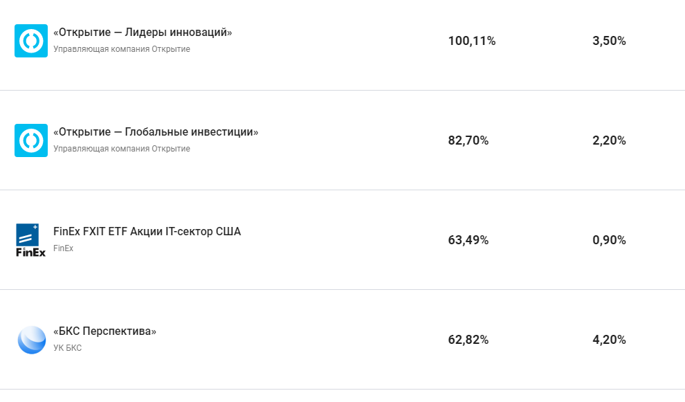 Например, стоимость одного из фондов «Сбербанка» FXIT выросла на 63% за год