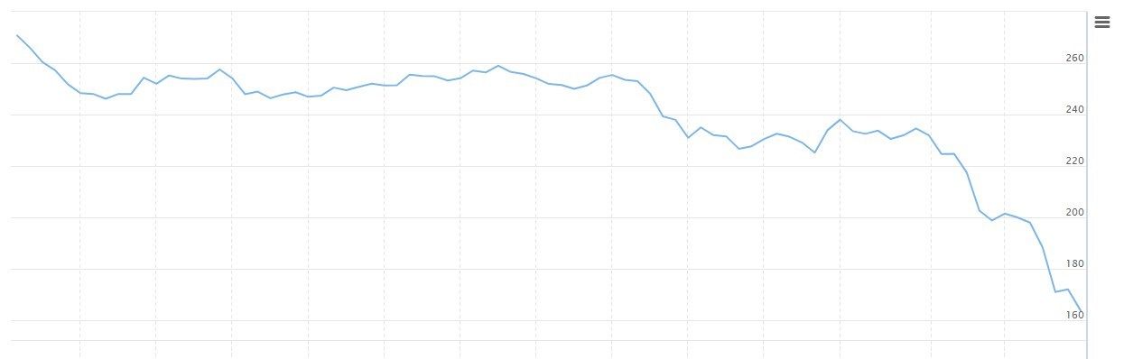 Например, с декабря 2019 года по март 2020 стоимость акций «Газпрома» упала на 40%