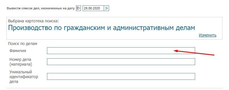 Укажите фамилию заемщика, и если она фигурирует в каком-то деле, вы увидите его