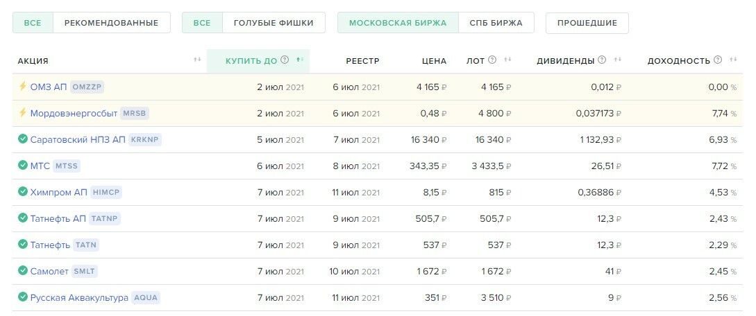 Напоминаем, что размер дивидендов устанавливается каждый раз отдельно: у компании могут быть отличные финансовые результаты, но она направит на дивиденды небольшую часть прибыли. Поэтому надежнее всего покупать акции, размер доходности по которым уже известен. Посмотреть их можно в сервисах, ведущих календари дивидендов: например, на InvestMint.